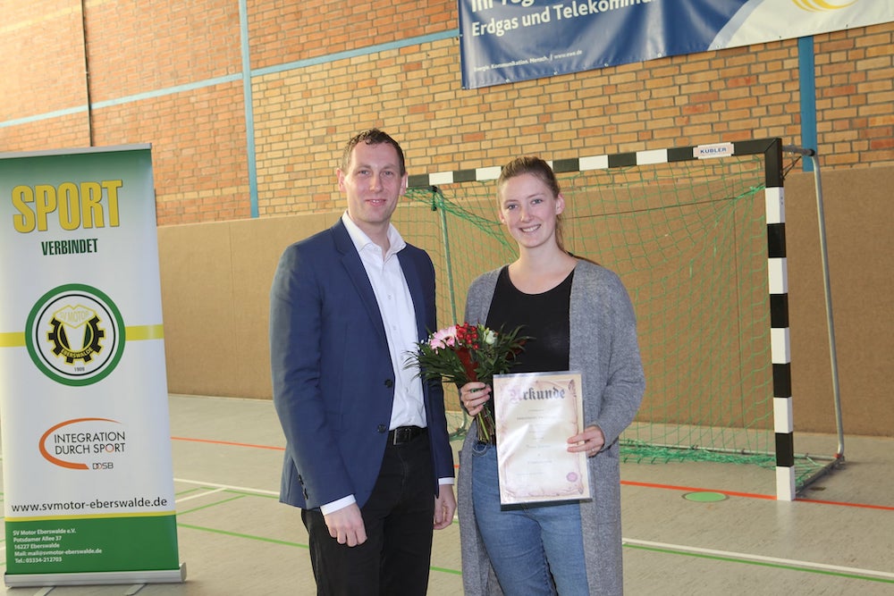Im Rahmen der diesjährigen Jahreshauptversammlung am 30.10.2021 in der vereinseigenen Sporthalle im Brandenburgischen Viertel in Eberswalde gab es auch für unsere Abteilung Leichtathletik ein erfreuliches Ereignis. Unser langjähriges Mitglied Teresa Schröder durfte sich über eine Auszeichnung mit der Ehrenurkunde für ihren unermüdlichen ehrenamtlichen Einsatz in den Abteilungen Leichtathletik und Tanzsport freuen.