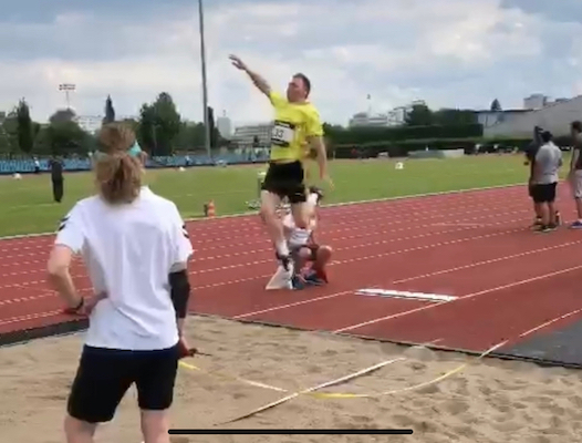 Später trat er dann mit neun anderen Männern aus Berlin und Brandenburg im Weitsprung an. Nach einem Fehlversuch sprang er im zweiten und dritten Versuch über die 6m-Marke und qualifizierte sich so für den Endkampf. Auch bei den weiteren drei Versuchen sprang er konstant über 6 Meter und konnte bei seinem letzten Versuch mit 6,16 m sogar noch ein bisschen was draufpacken. Damit erreichte er den 7. Platz und stellte eine neue Jahresbestleistung auf.
