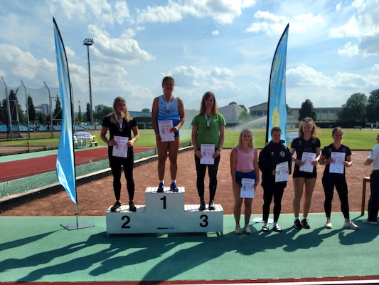 Besser lief es für sie dagegen am zweiten Wettkampftag. Sie wusste, dass es aufgrund der vielen Teilnehmerinnen beim Speerwerfen schwierig wird, einen Platz auf dem Siegerpodest zu bekommen. Doch schon beim ersten Wurf flog der Speer weit. Mit 35,96 m konnte Christina bereits eine neue persönliche Bestleistung aufstellen. Hoch motiviert und gut gelaunt schaffte sie es dann sogar im vierten Versuch, die gerade neu aufgestellte Bestleistung nochmals und sogar deutlich zu verbessern. Mit grandiosen 37,44 m erreichte sie schlussendlich den dritten Platz und sicherte sich die Bronzemedaille.